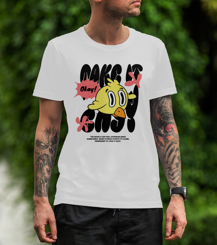 The Okay The World Can Feel Overwhelming Make It Easy T-shirt is designed for everyday wear and a consistent fit. Fabric is pre-shrunk ring-spun cotton with durable stitching. See the size chart below for exact measurements.