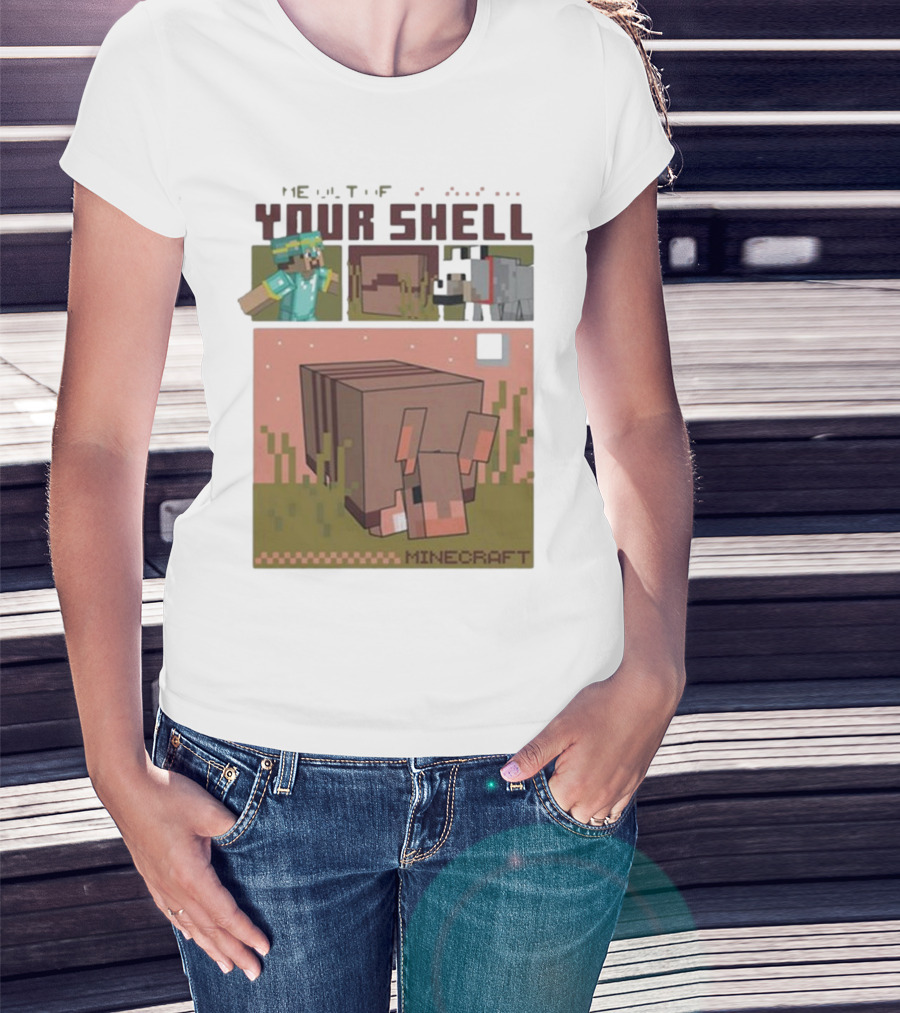 The Minecraft New Come Out Of Your Shell T-shirt is designed for everyday wear and a consistent fit. Fabric is pre-shrunk ring-spun cotton with durable stitching. See the size chart below for exact measurements.