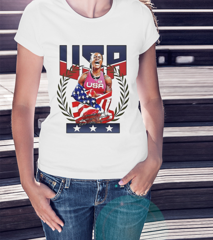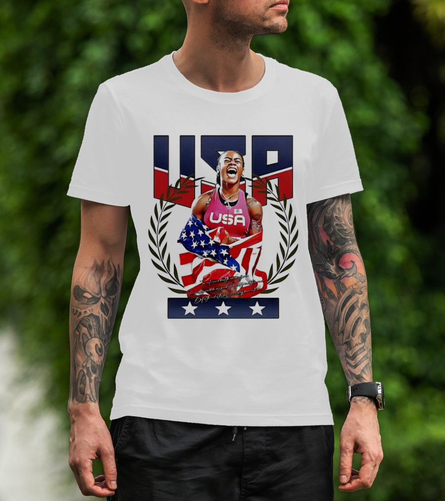 USA Sha’Carri Richardson Gold Medal Celebration American Flag T-Shirt