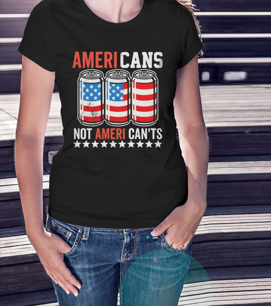 AMERI CANS NOT AMERI CAN'TS Stars And Stripes Soda Cans Patriot T-Shirt