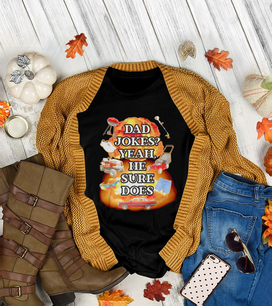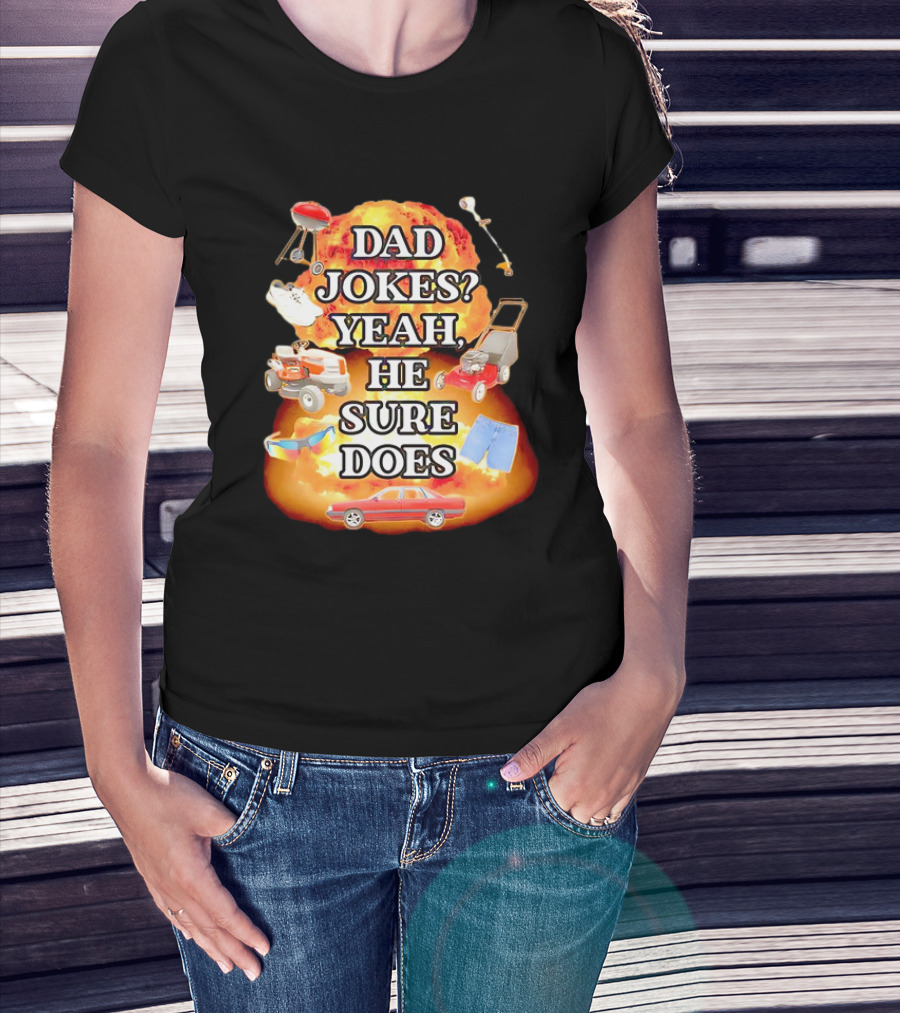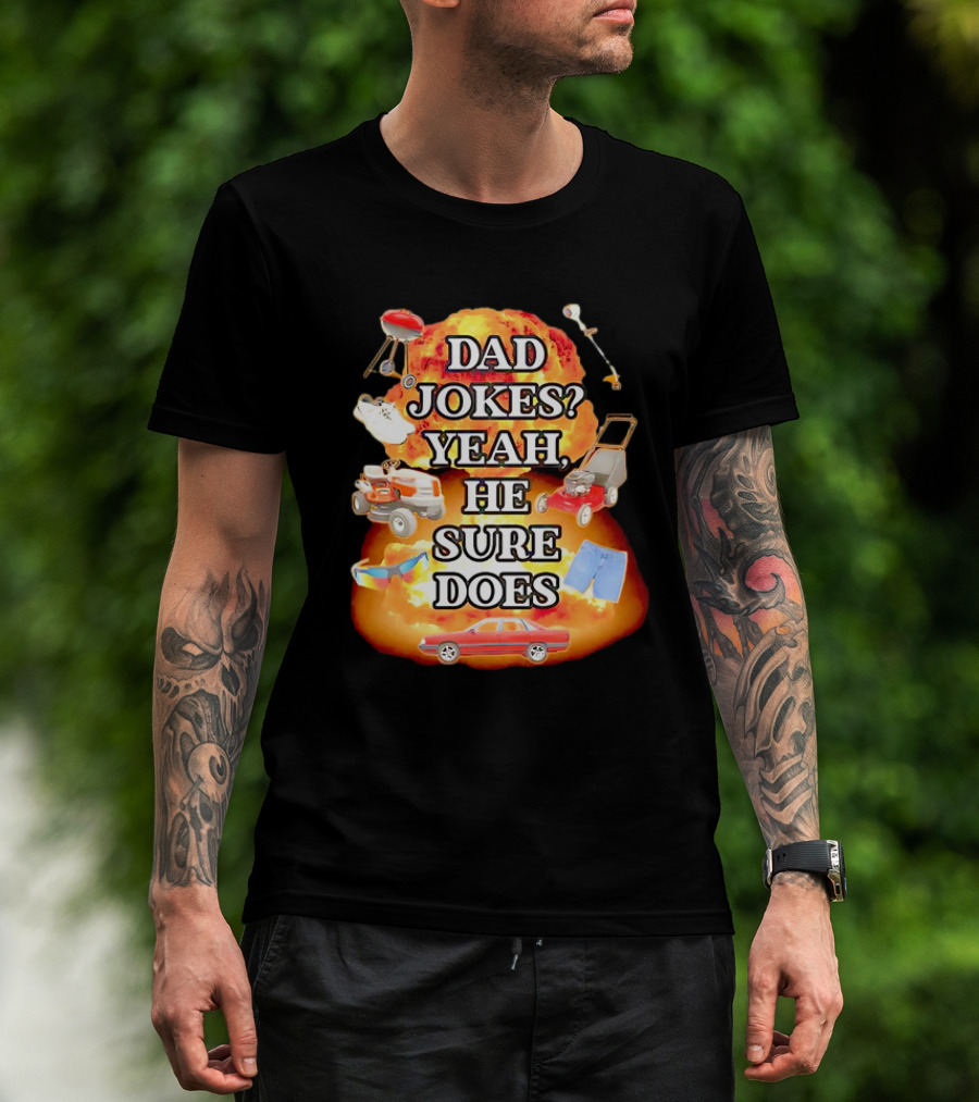 Dad Jokes Yeah He Sure Does Explosion Lawnmower Grill Sneakers Shorts Car Sunglasses T-Shirt