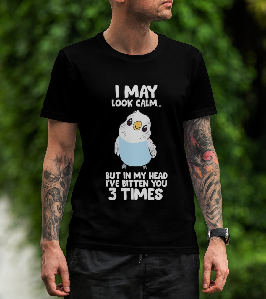 I May Look Calm Budgie Bird I've Bitten You 3 Times T-Shirt