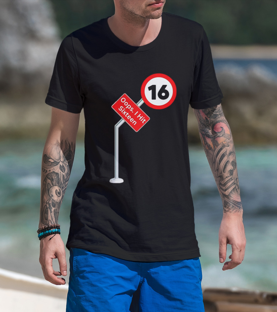 Oops I Hit Sixteen 16 Road Sign T-Shirt