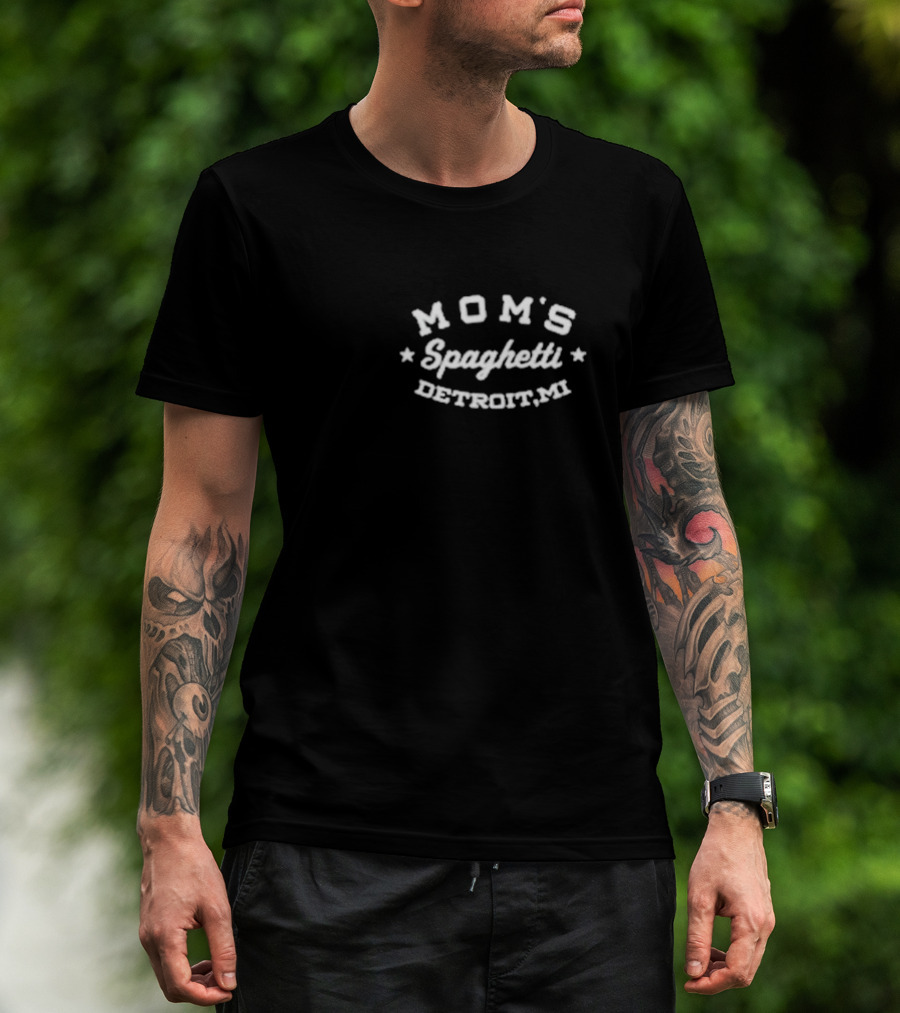 The Mom's Spaghetti Detroit MI T-shirt is designed for everyday wear and a consistent fit. Fabric is pre-shrunk ring-spun cotton with durable stitching. See the size chart below for exact measurements.