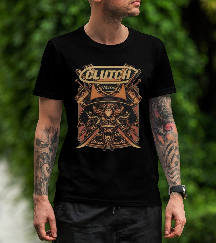 Clutch Marcus Samurai Warrior Helmet Swords T-Shirt