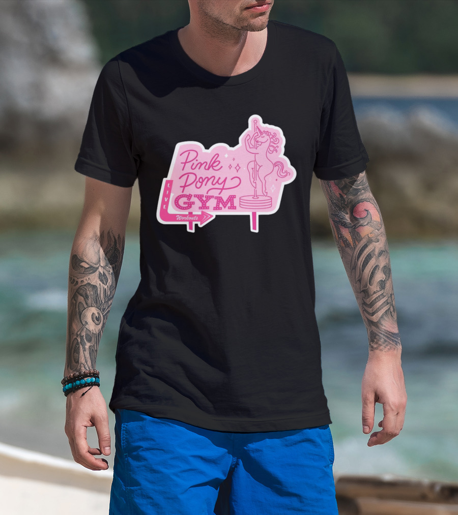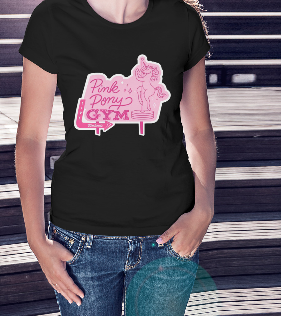 Pink Pony Gym Live Workouts Unicorn Pole Fitness T-Shirt