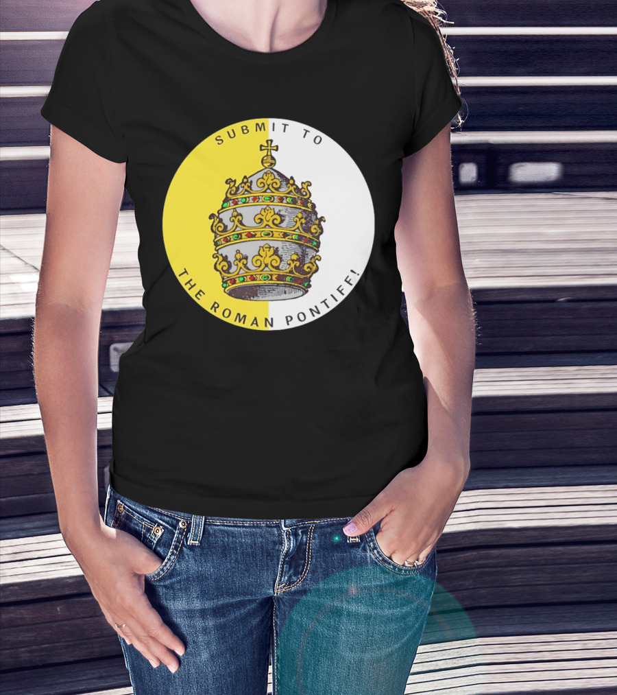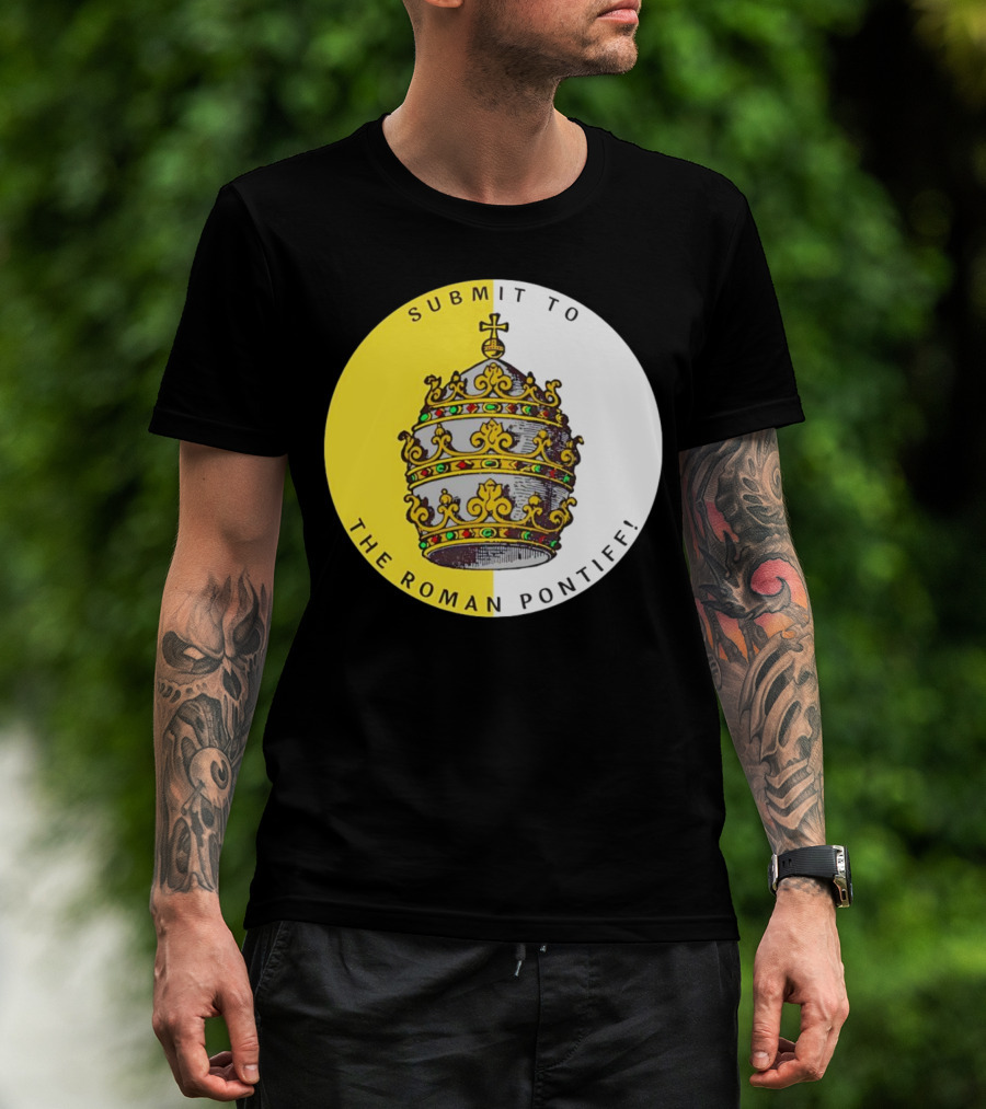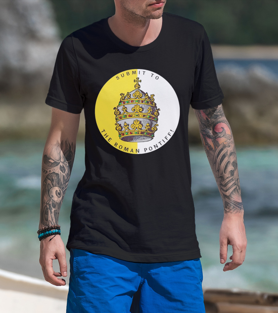 Submit To The Roman Pontiff Triple Tiara Circular Emblem T-Shirt