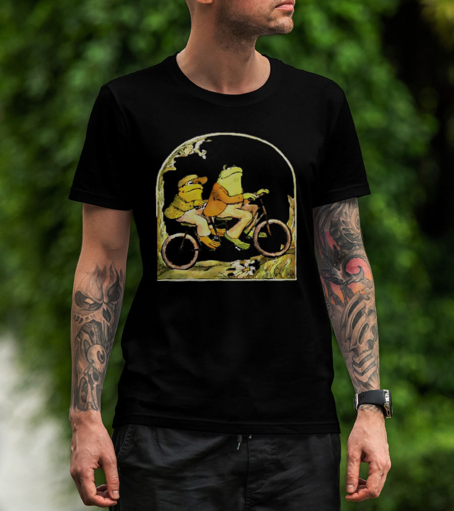 Frog And Toad Riding Tandem Bicycle In Nature Scene T-Shirt