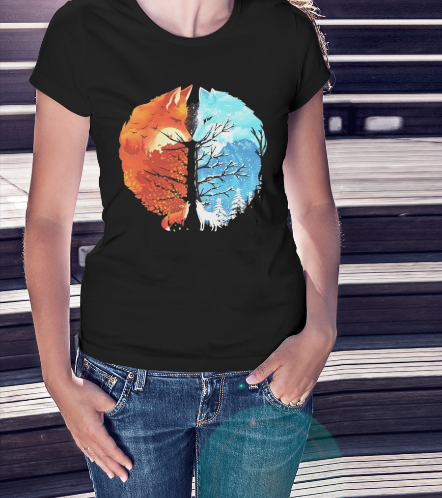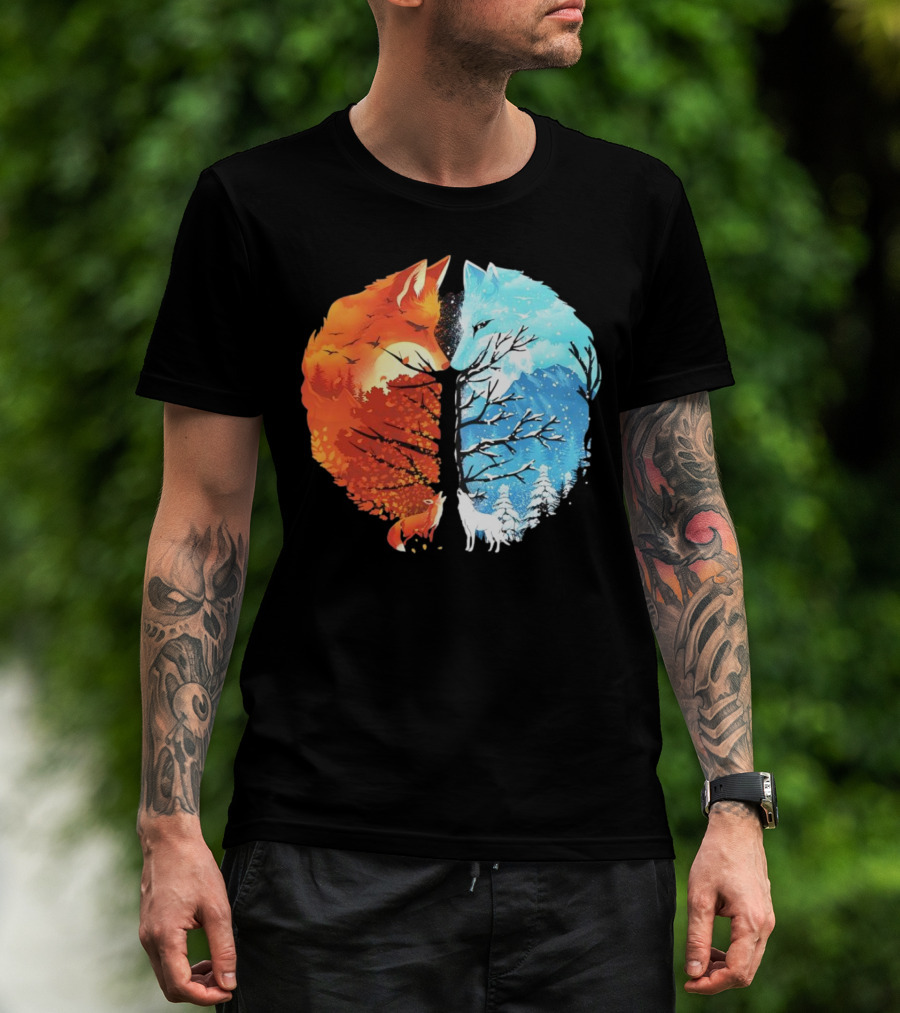 Fire And Ice Fox Dual Seasons Tree T-Shirt