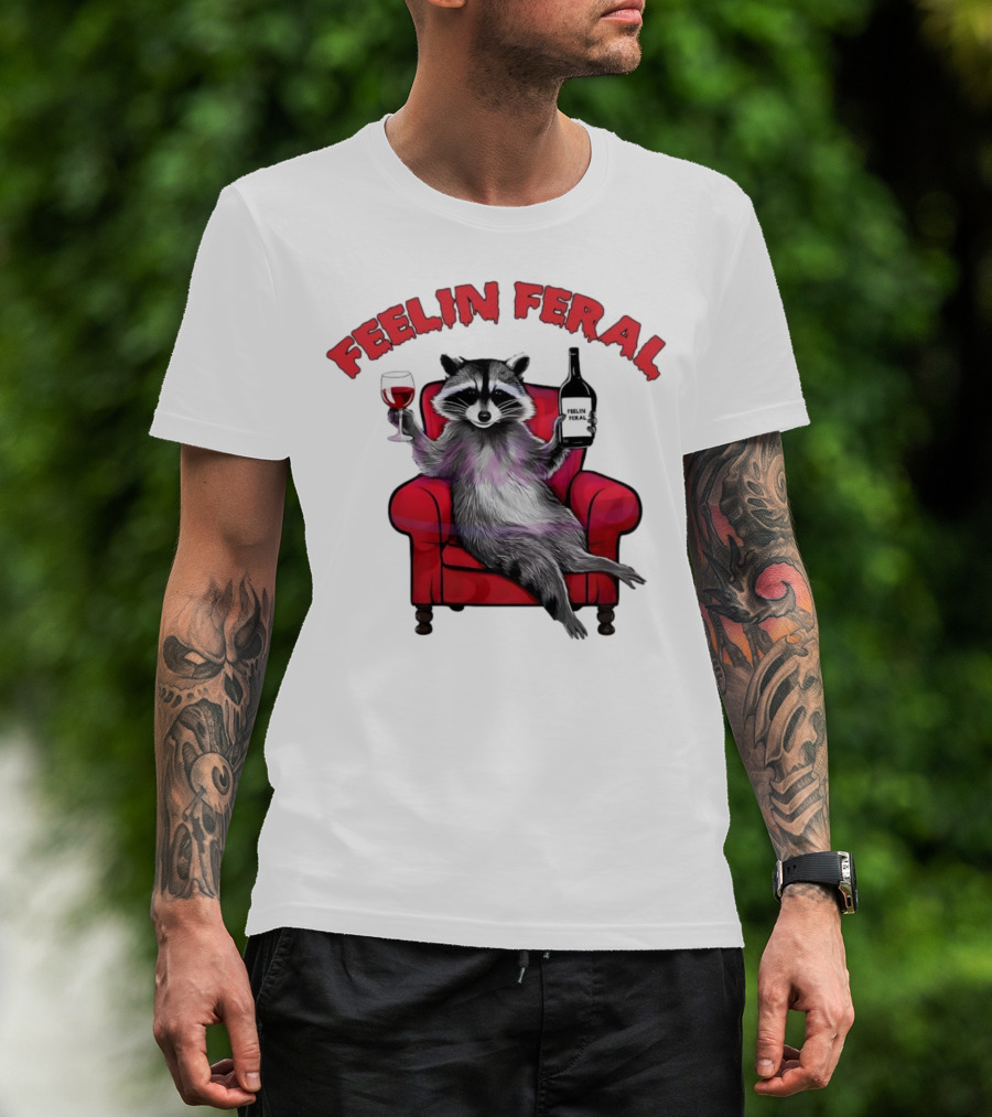 Feelin Feral Raccoon Drinking Wine Sitting On Red Armchair T-Shirt