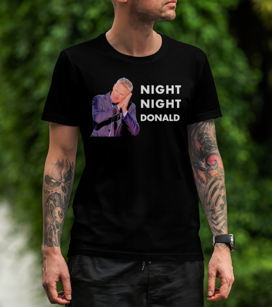 The Steve Kerr Night Night Donald T-shirt is designed for everyday wear and a consistent fit. Fabric is pre-shrunk ring-spun cotton with durable stitching. See the size chart below for exact measurements.
