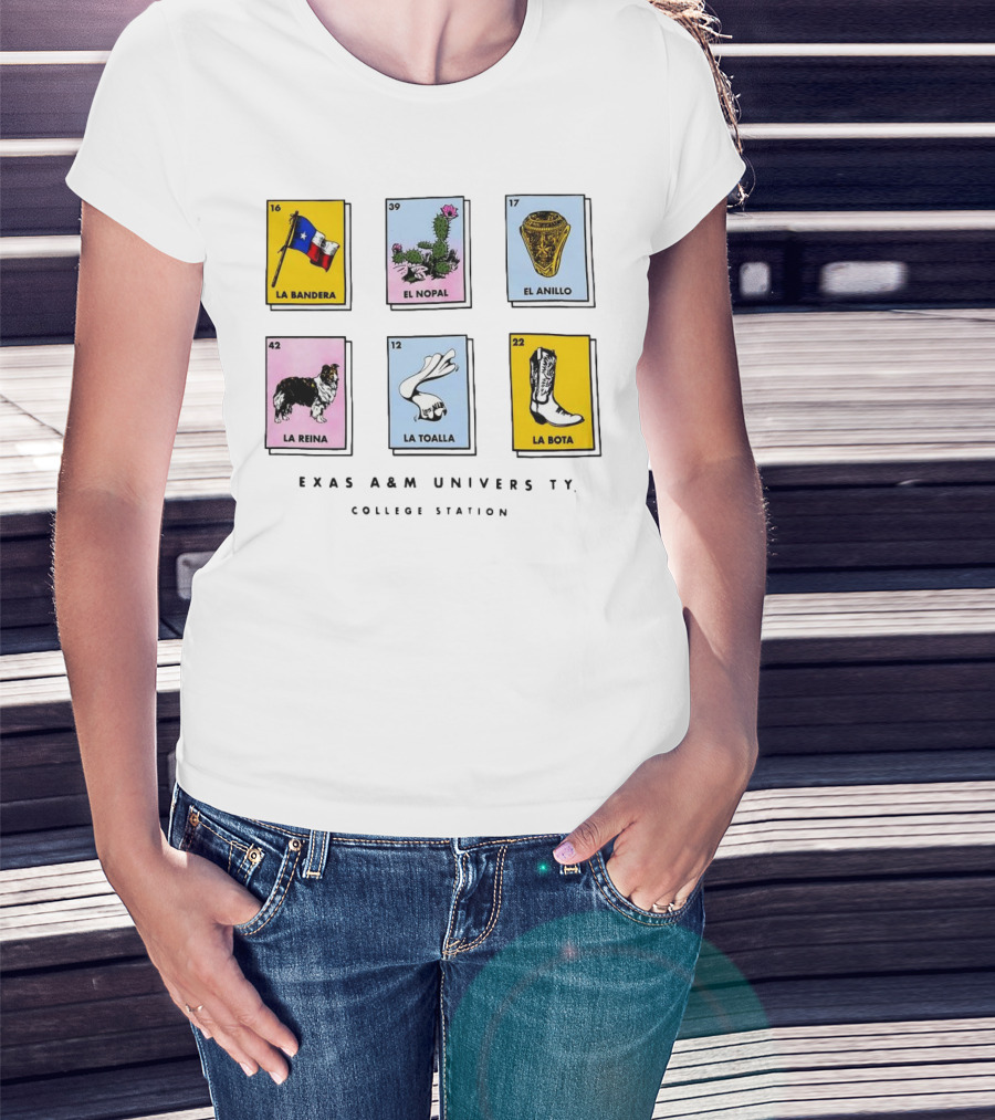 Texas A&M University College Station Loteria Cards La Bandera El Nopal El Anillo La Reina La Toalla La Bota T-Shirt