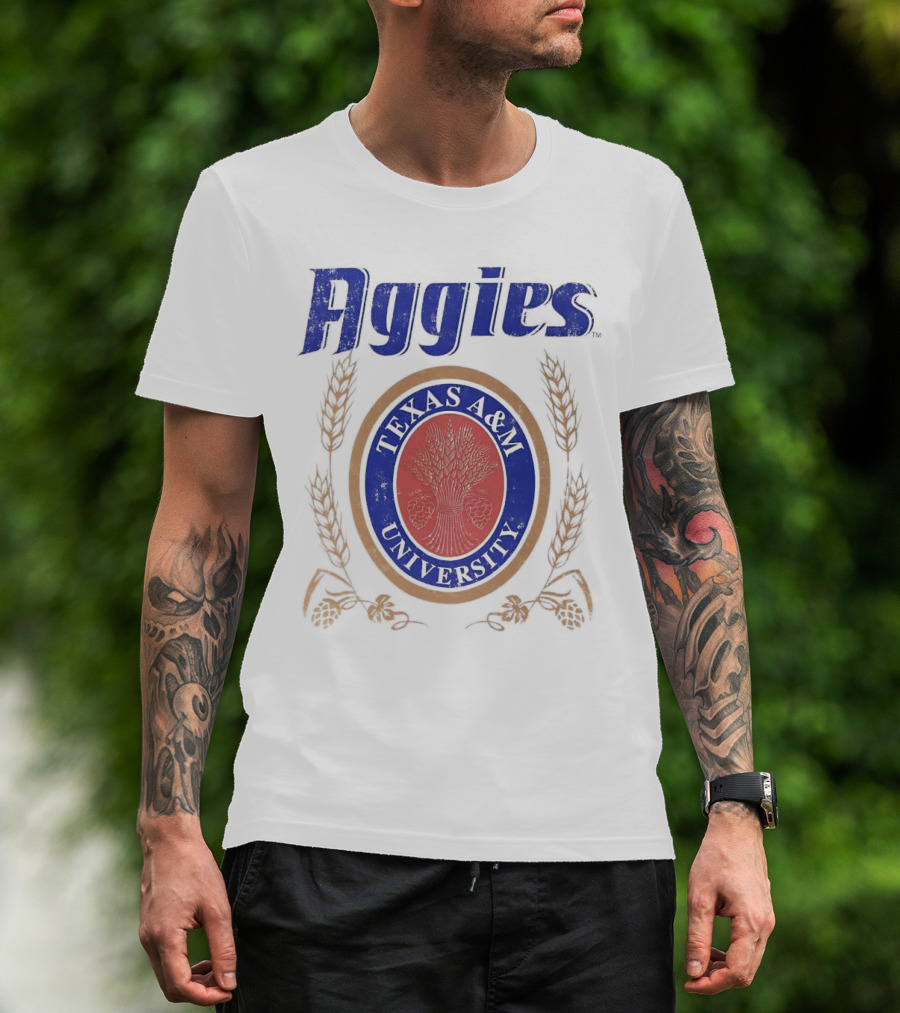 The Texas A&M Aggies University T-shirt is designed for everyday wear and a consistent fit. Fabric is pre-shrunk ring-spun cotton with durable stitching. See the size chart below for exact measurements.