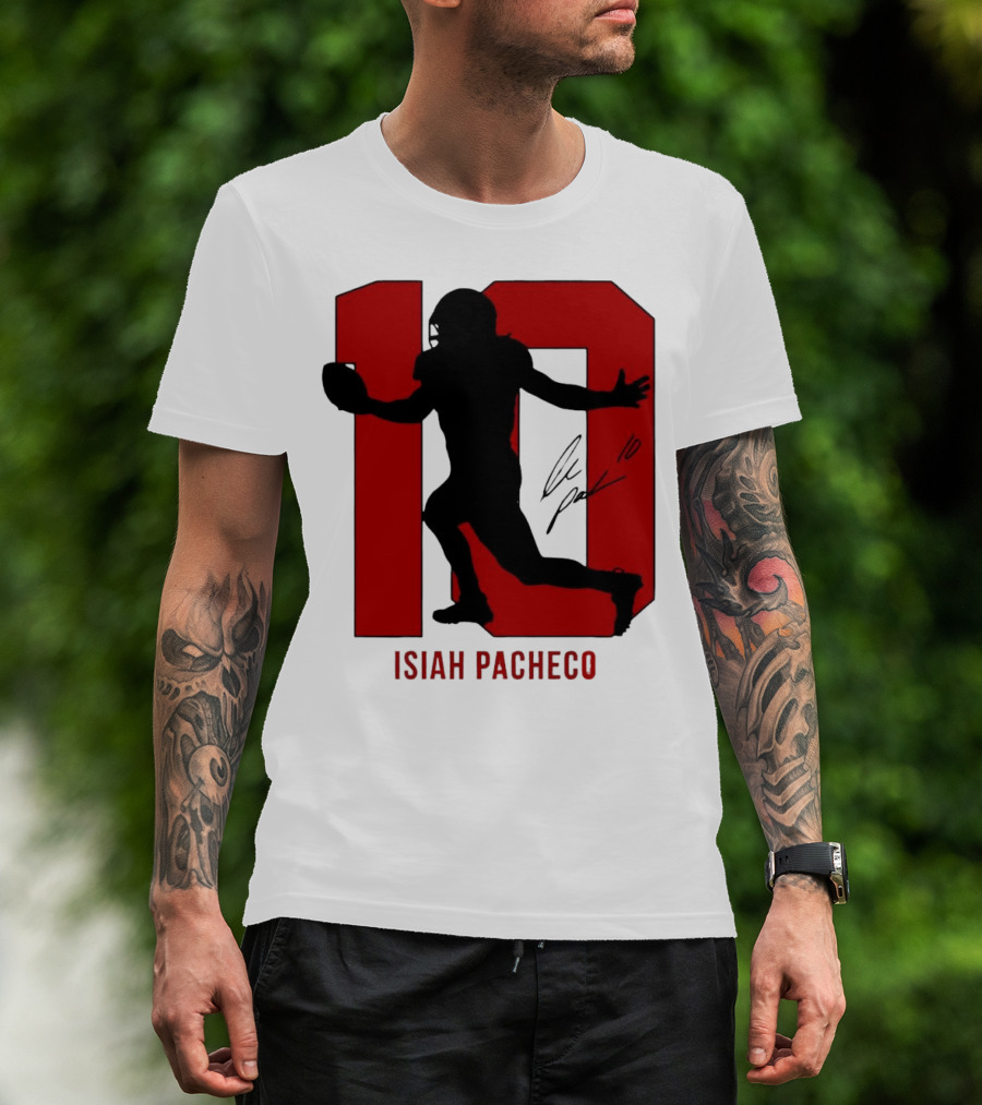 Isiah Pacheco Number 10 Kansas City Chiefs Silo Signature Action T-Shirt