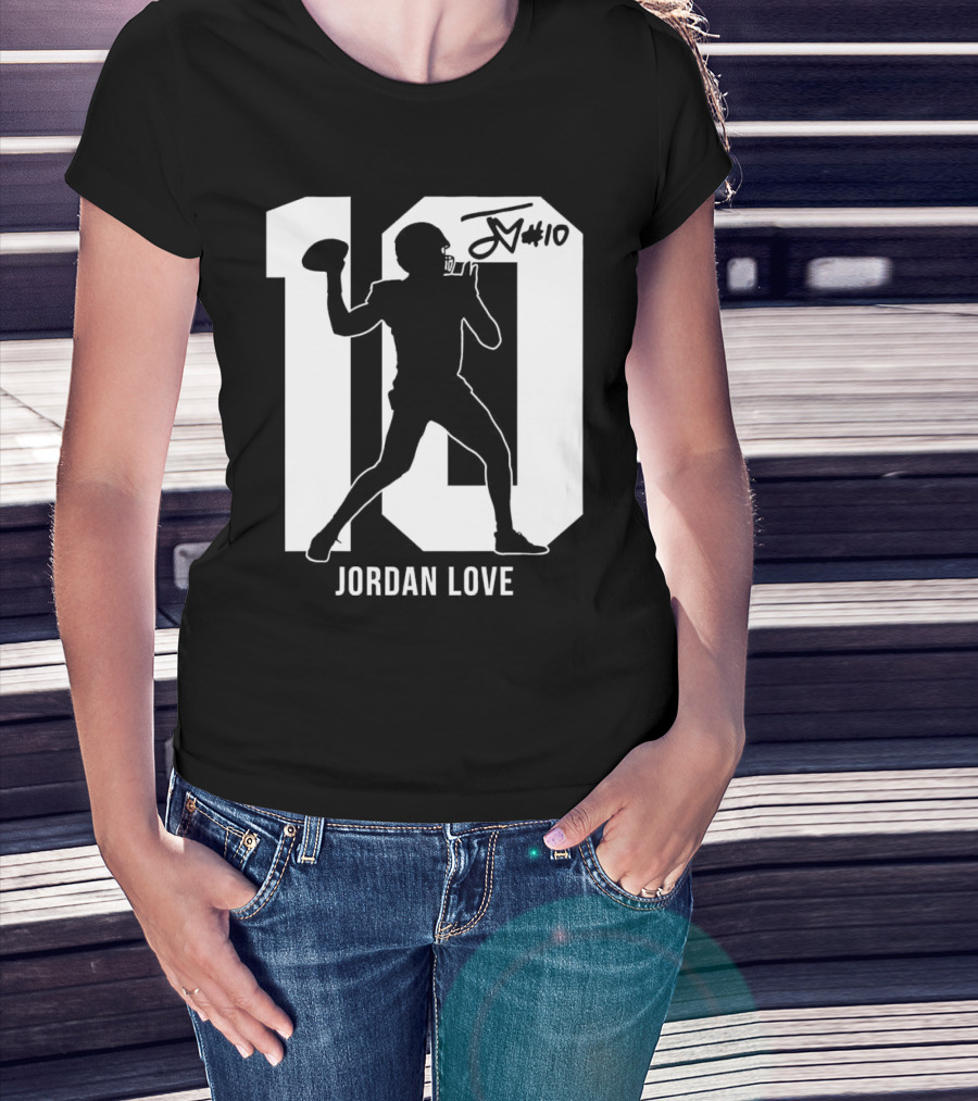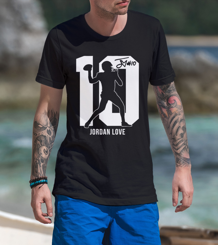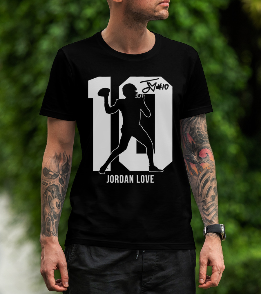 Jordan Love Green Bay Packers Number 10 Silhouette Signature T-Shirt