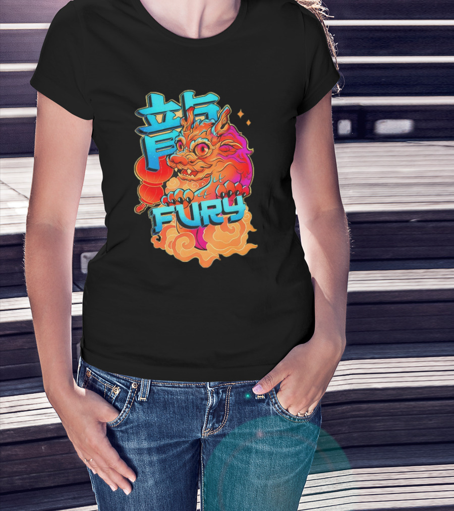 The Dragon Fury Vibrant Mythical Creature With Neon Chinese Characters T-shirt is designed for everyday wear and a consistent fit. Fabric is pre-shrunk ring-spun cotton with durable stitching. See the size chart below for exact measurements.