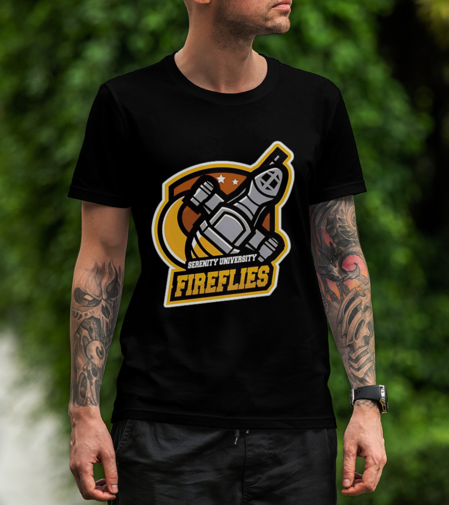 Serenity University Fireflies Spaceship Logo With Stars And Moon T-Shirt