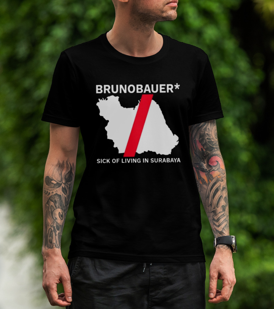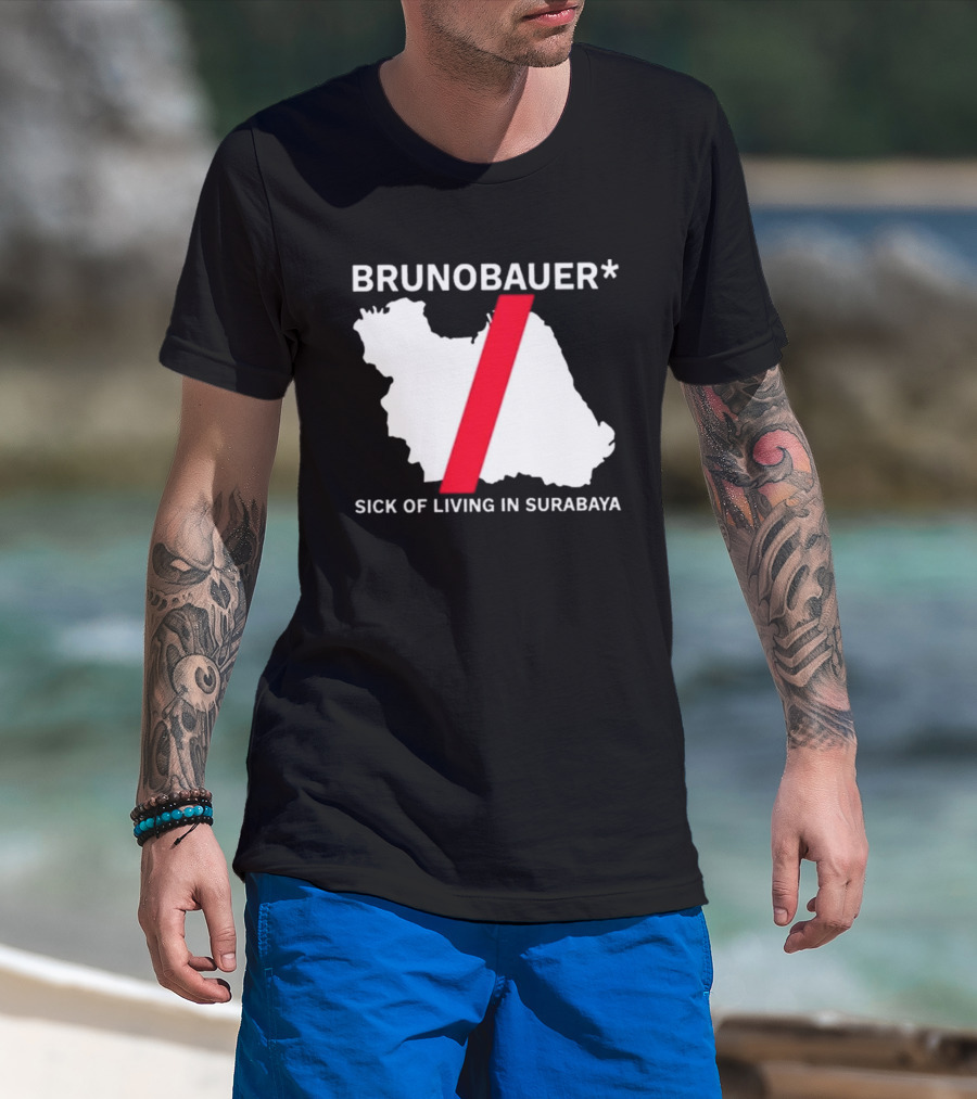 BRUNOBAUER Sick Of Living In Surabaya Map Design With Red Slash T-Shirt