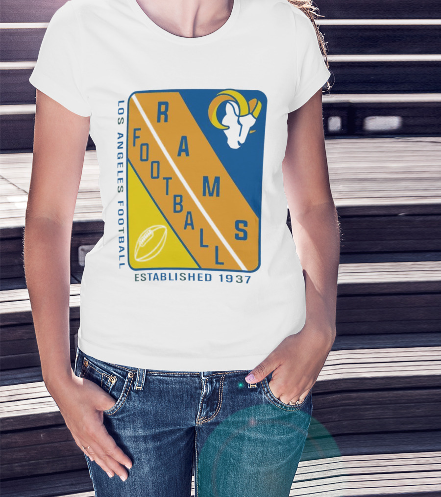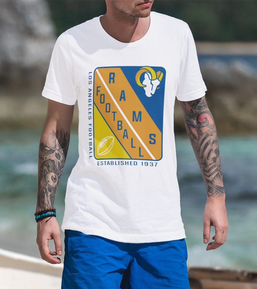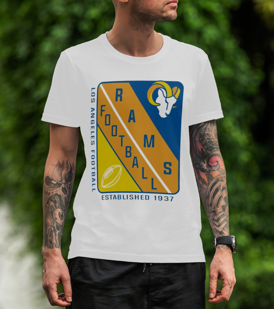 The Los Angeles Rams Football Established 1937 T-shirt is designed for everyday wear and a consistent fit. Fabric is pre-shrunk ring-spun cotton with durable stitching. See the size chart below for exact measurements.
