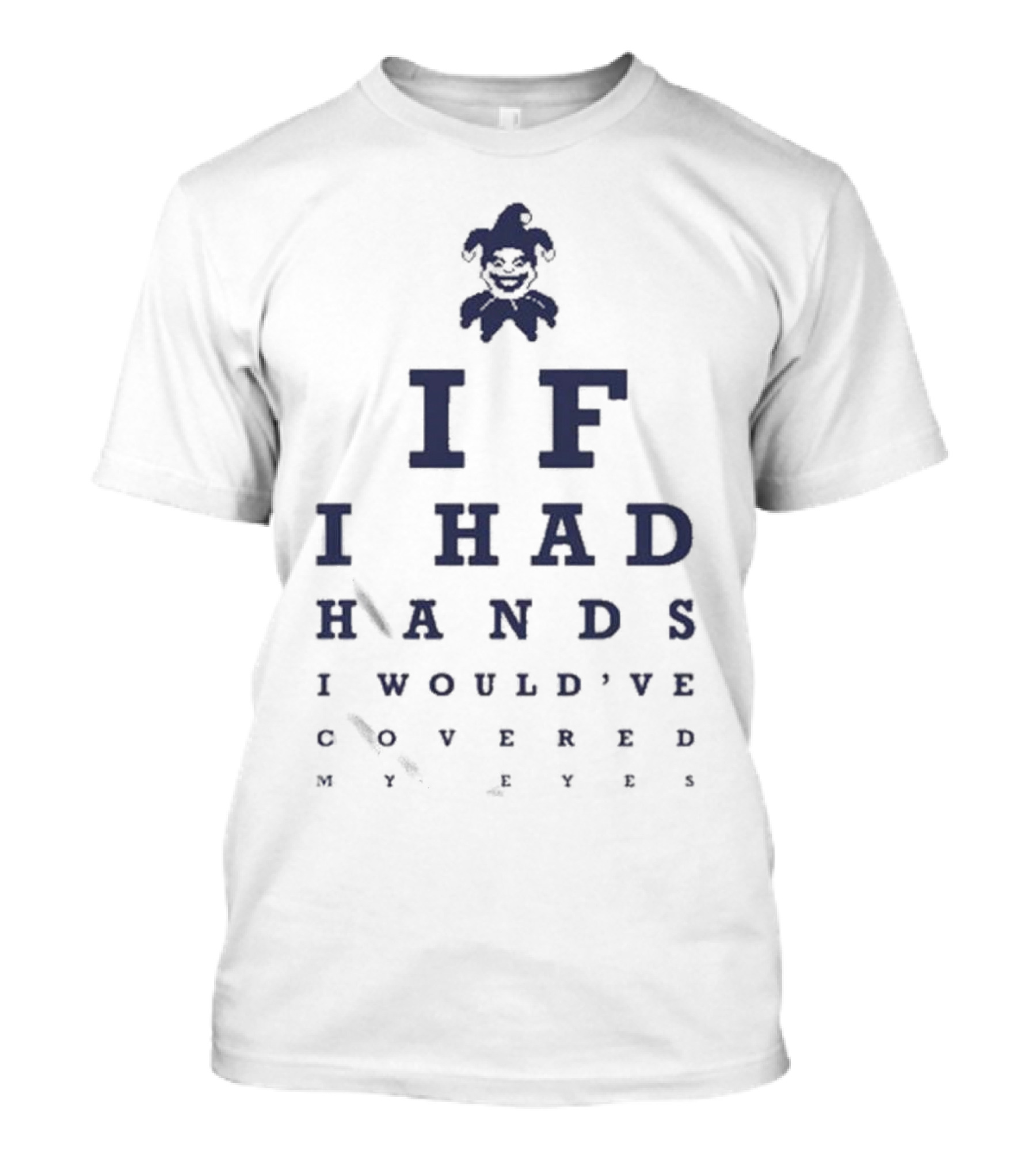 The New Balatro Jimbo Eye Test If I Had Hands I Would've Covered My Eyes T-shirt is designed for everyday wear and a consistent fit. Fabric is pre-shrunk ring-spun cotton with durable stitching. See the size chart below for exact measurements.