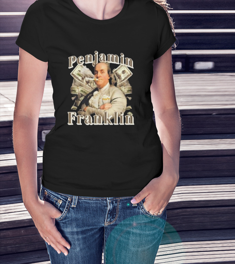 Penjamin Franklin Smoking Dollars Bills In Background T-Shirt