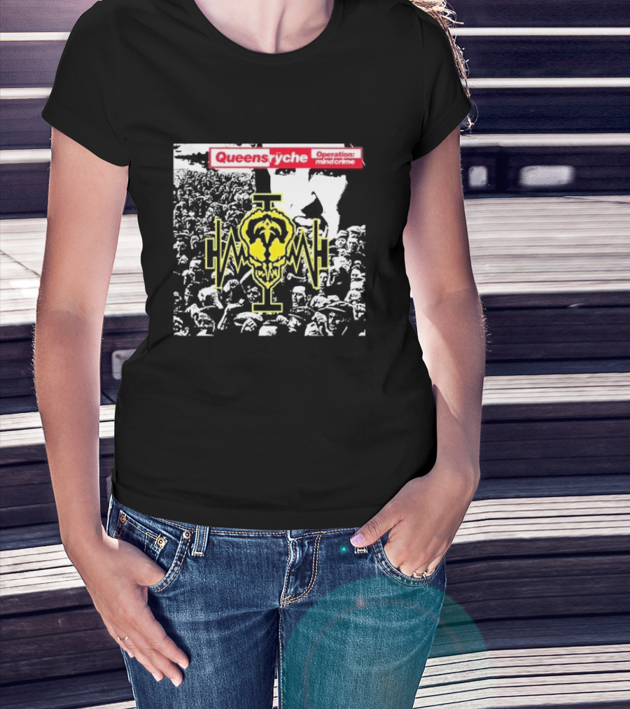Queensryche Operation: Mindcrime Yellow Skull Symbol Over Crowd T-Shirt