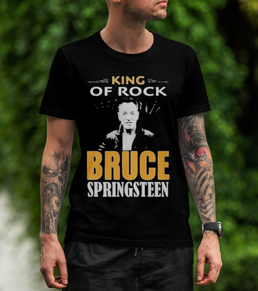The King of Rock Bruce Springsteen T-shirt is designed for everyday wear and a consistent fit. Fabric is pre-shrunk ring-spun cotton with durable stitching. See the size chart below for exact measurements.