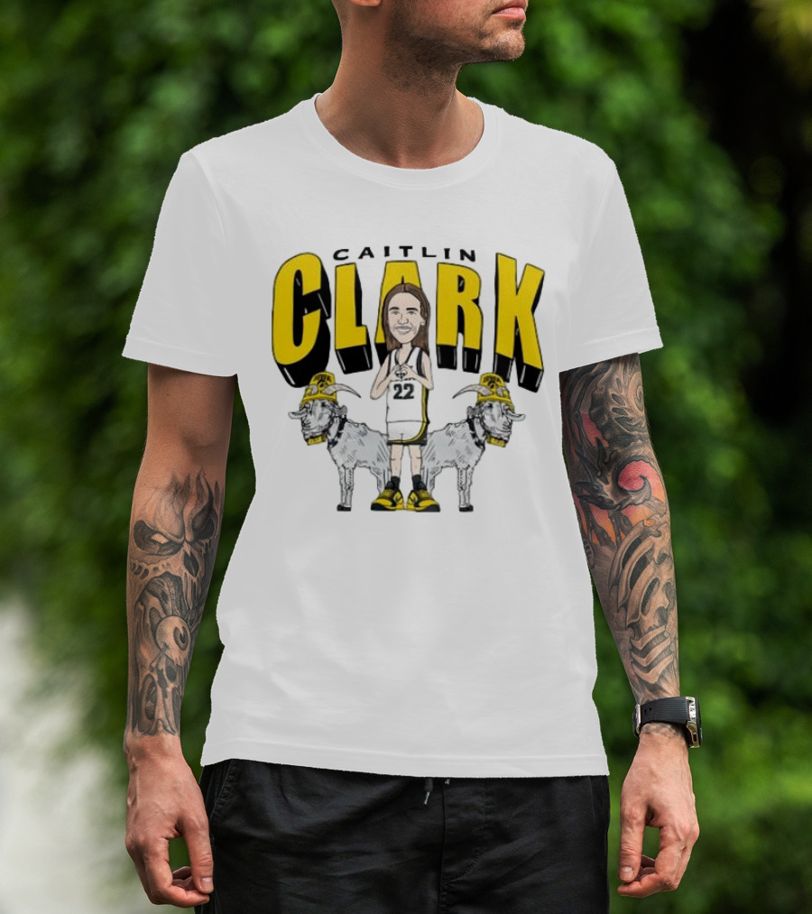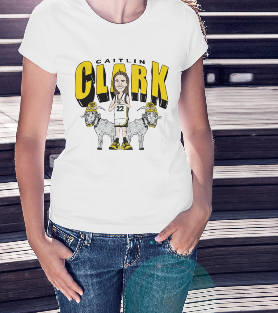 Iowa Hawkeyes Caitlin Clark 22 Caricature With Goats And Heart Hands T-Shirt