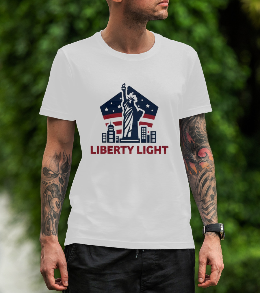 Liberty Light Statue Stars Stripes America T-Shirt