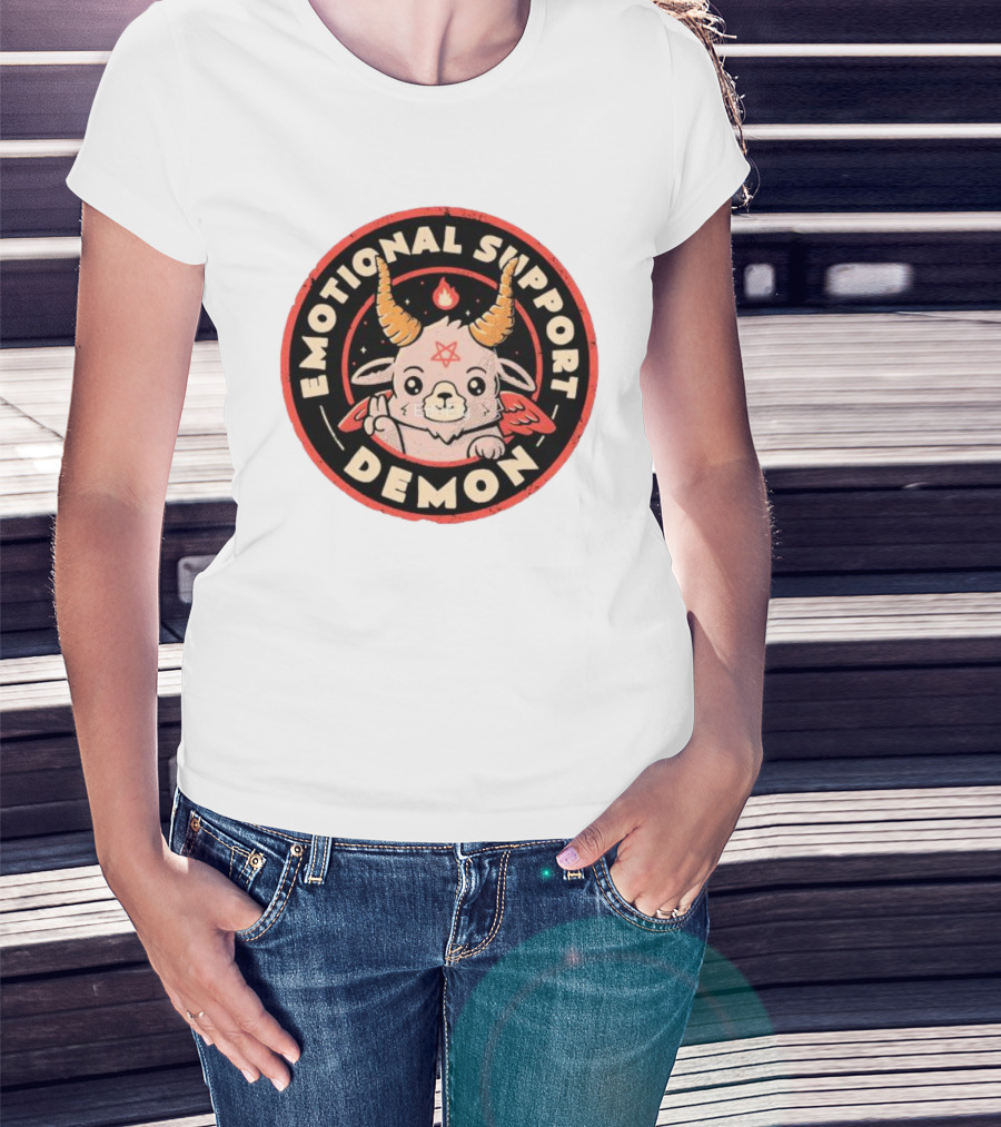 Emotional Support Demon Cute Devil Goat With Wings And Fire T-Shirt