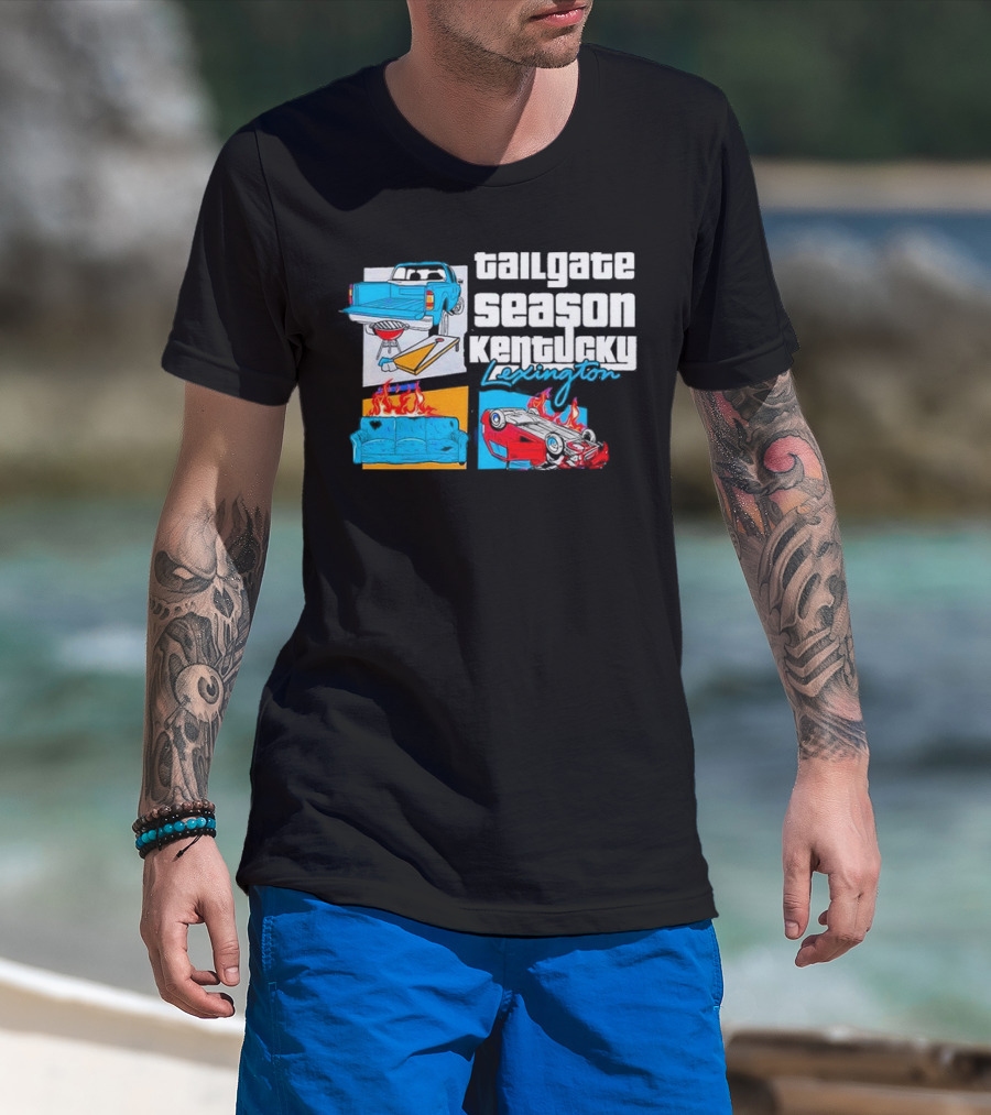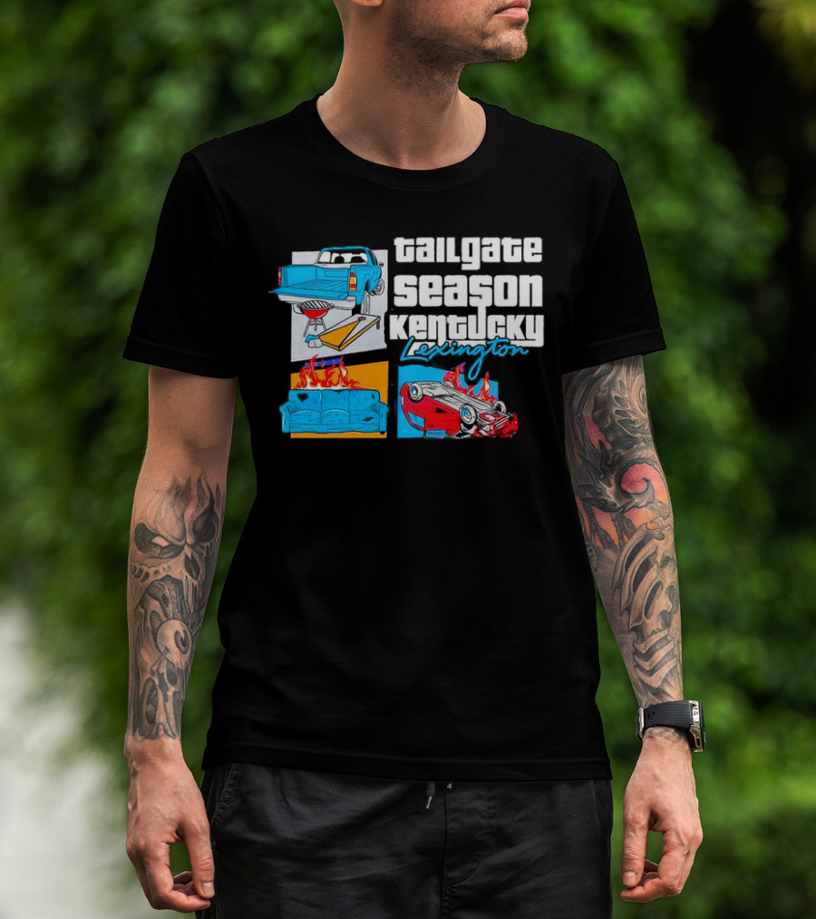 Tailgate Season Kentucky Lexington Truck BBQ Couch Fire Car Flip T-Shirt