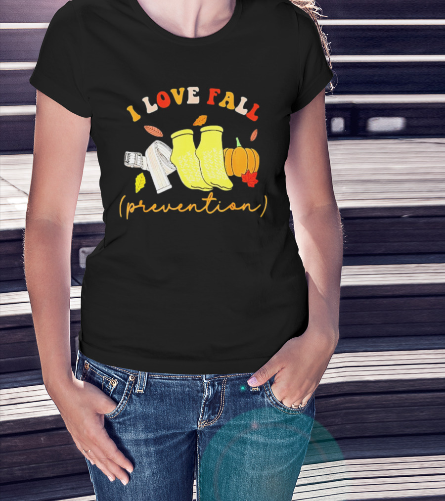 I Love Fall Prevention Socks And Leaves Pumpkin T-Shirt