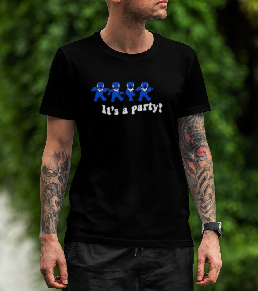 The Kentucky Grateful Cats Dancing with It's a Party T-shirt is designed for everyday wear and a consistent fit. Fabric is pre-shrunk ring-spun cotton with durable stitching. See the size chart below for exact measurements.