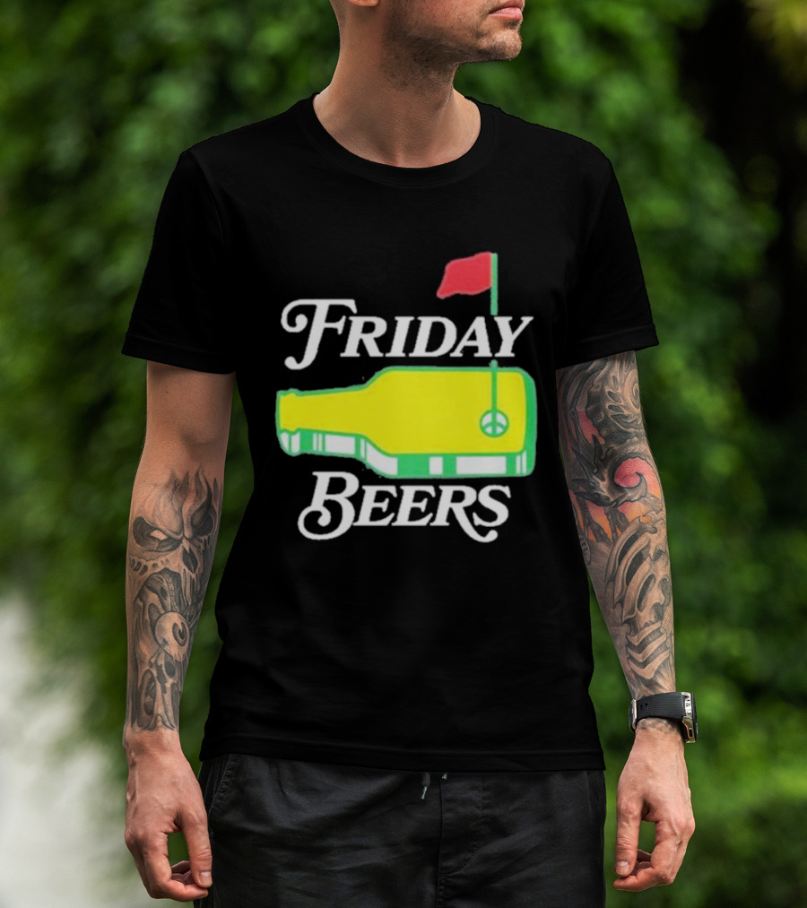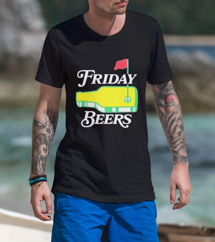 Friday Beers Golf Course Logo Flag Green Bottle T-Shirt