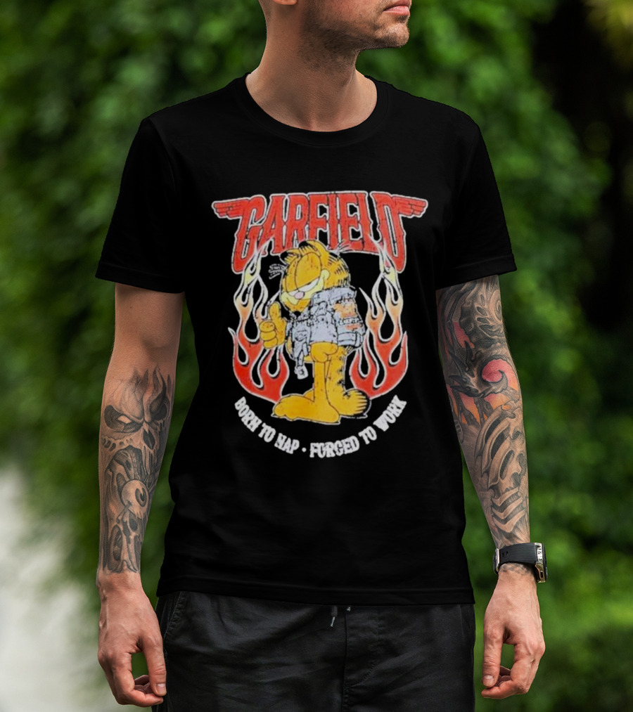 Garfield Born To Nap Forged To Work Flame Wings Backpack Thumbs Up T-Shirt