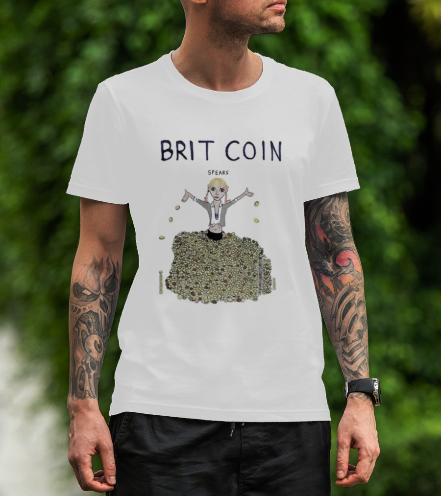 The Brit Coin Spears Dave Portnoy T-shirt is designed for everyday wear and a consistent fit. Fabric is pre-shrunk ring-spun cotton with durable stitching. See the size chart below for exact measurements.