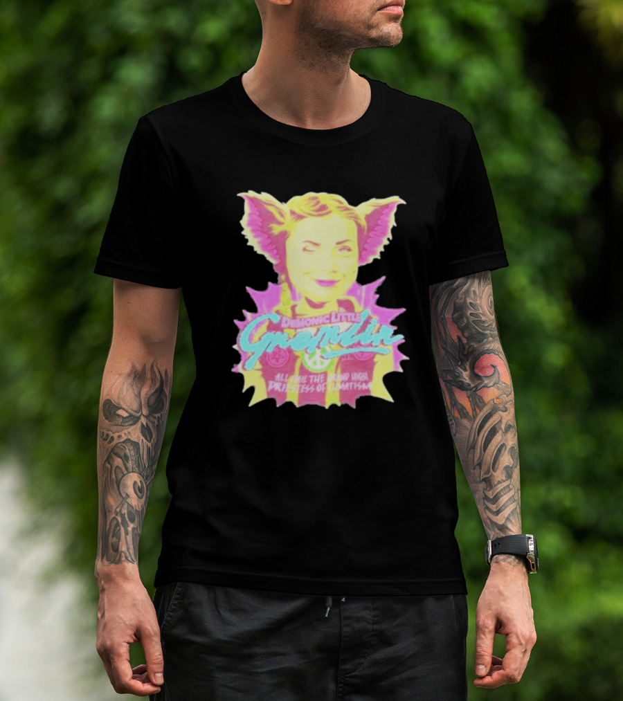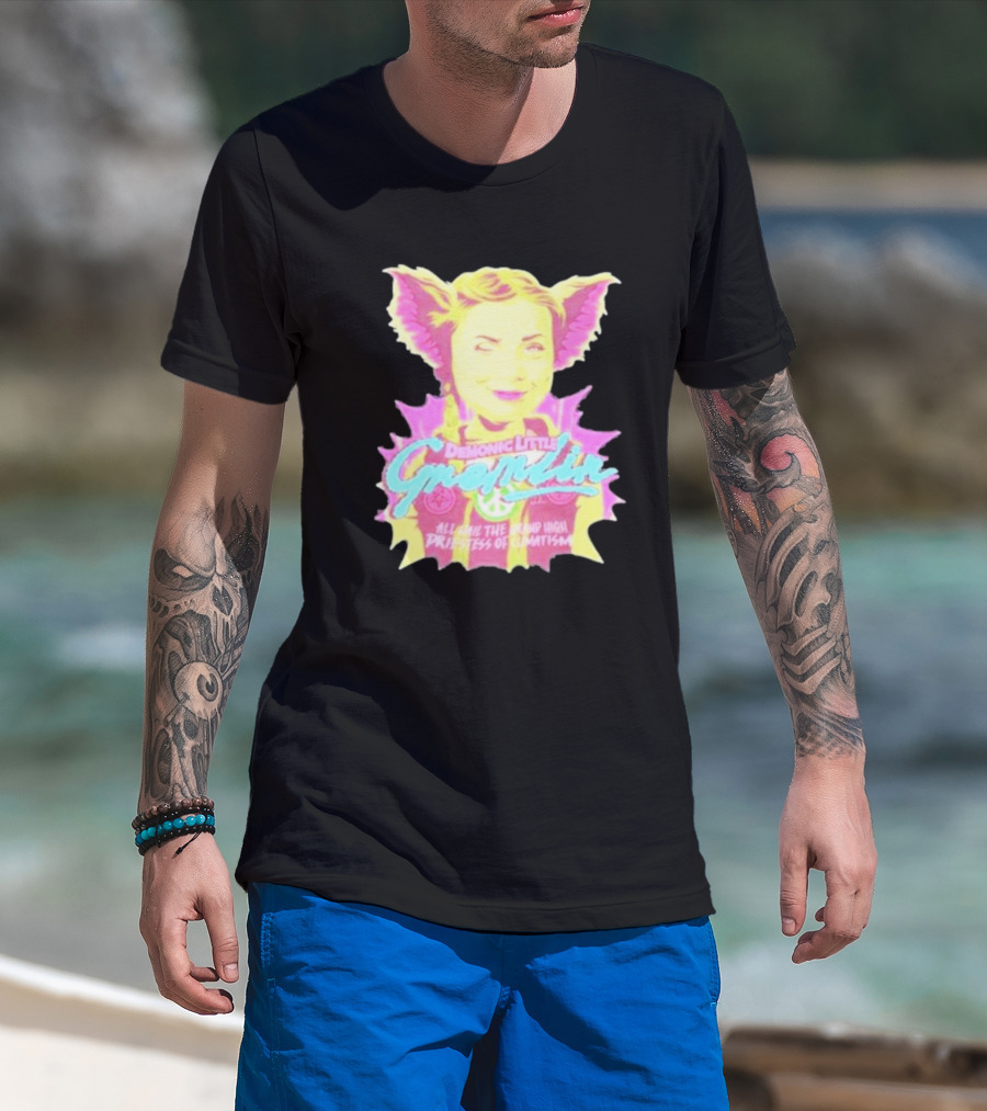 The Demonic Little Gremlin All Hail The Grand High Priestess Of Climatism T-shirt is designed for everyday wear and a consistent fit. Fabric is pre-shrunk ring-spun cotton with durable stitching. See the size chart below for exact measurements.