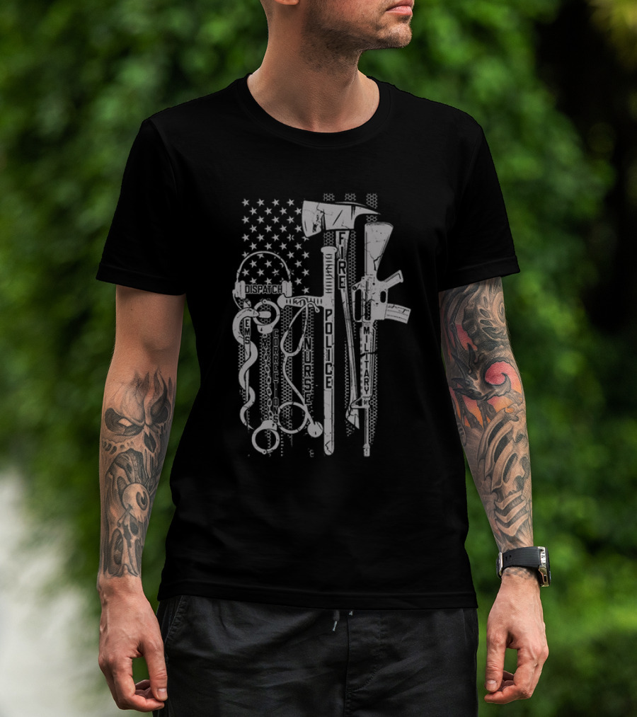 Patriot Apparel Heroes Dispatch Nurse Corrections Fire Police Military No One Fights Alone T-Shirt