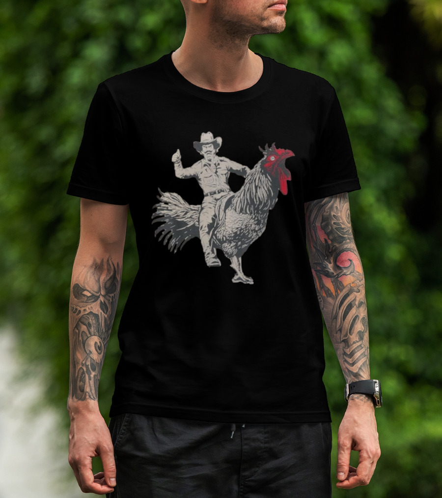 The Cowboy Riding Chicken T-shirt is designed for everyday wear and a consistent fit. Fabric is pre-shrunk ring-spun cotton with durable stitching. See the size chart below for exact measurements.