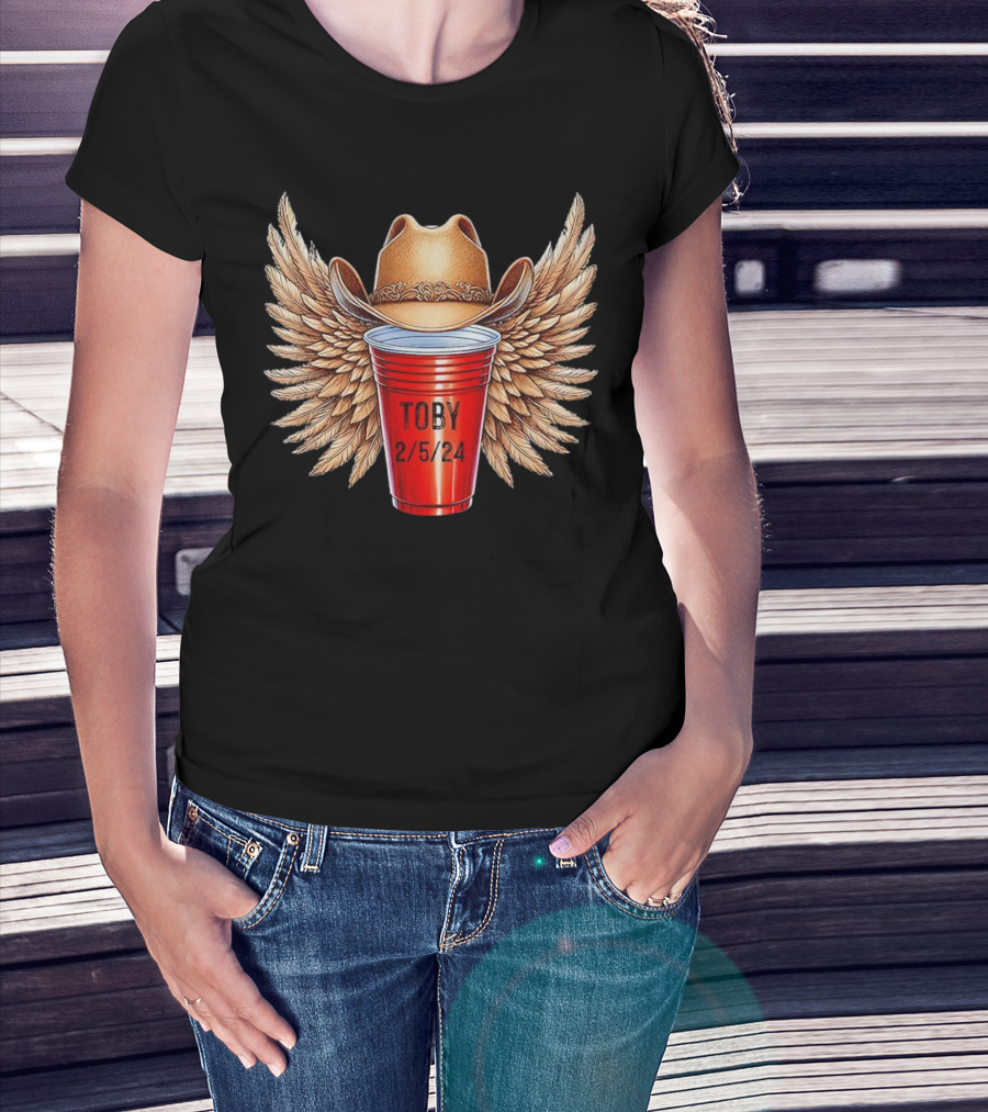 Toby Keith Toby Red Cup 2/5/24 Winged Cowboy Hat T-Shirt