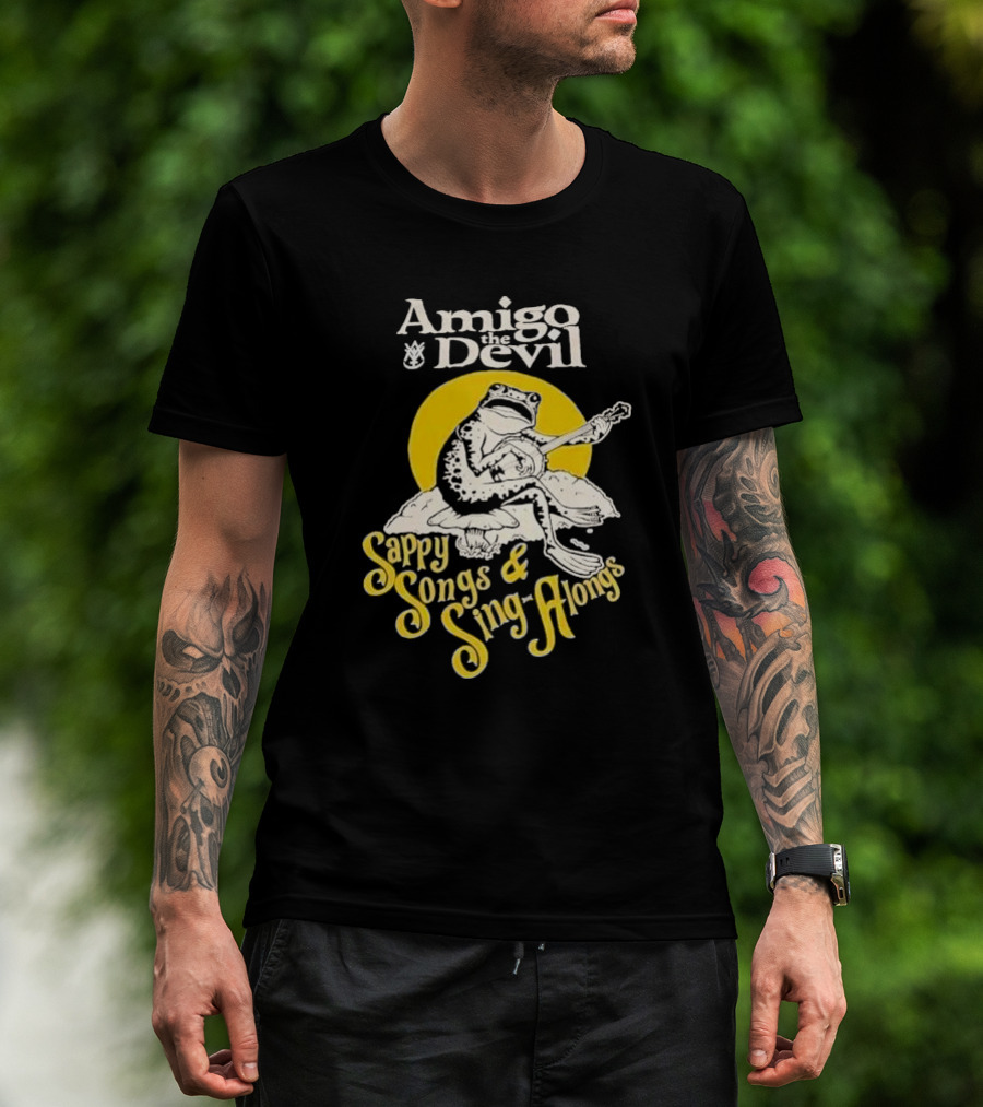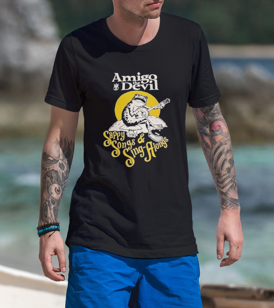 Amigo The Devil Sappy Songs And Sing Alongs Frog Playing Guitar T-Shirt