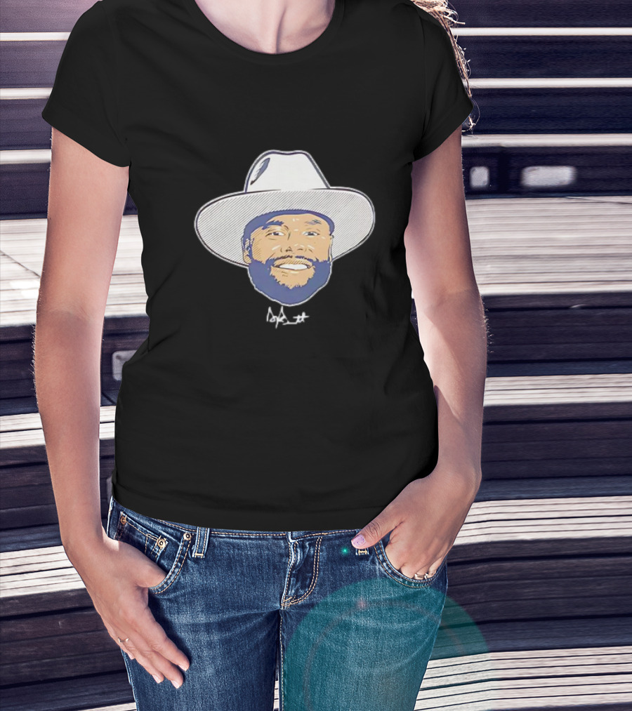 Dak Prescott Dallas Cowboys Big Head Signature Cowboy Hat T-Shirt