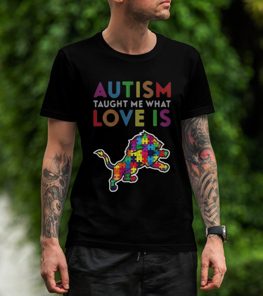 Detroit Lions Autism Taught Me What Love Is Puzzle Lion T-Shirt