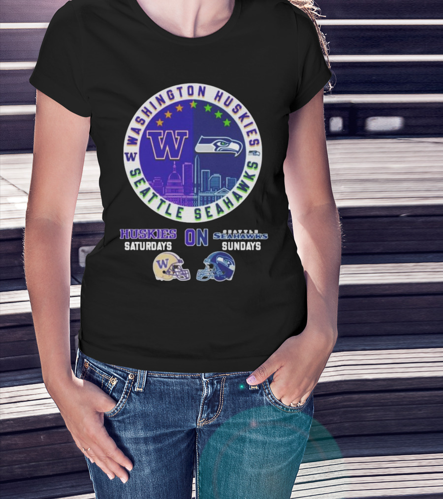 Washington Huskies Seattle Seahawks Huskies On Saturdays Seahawks On Sundays T-Shirt