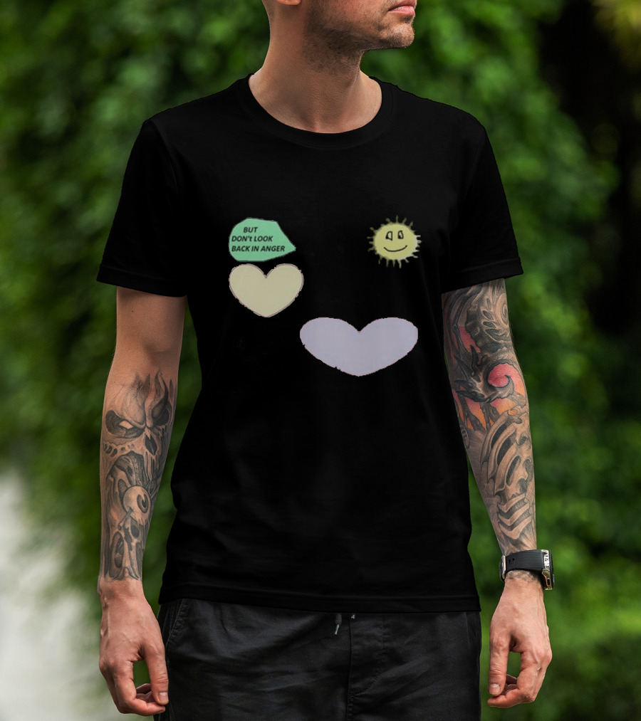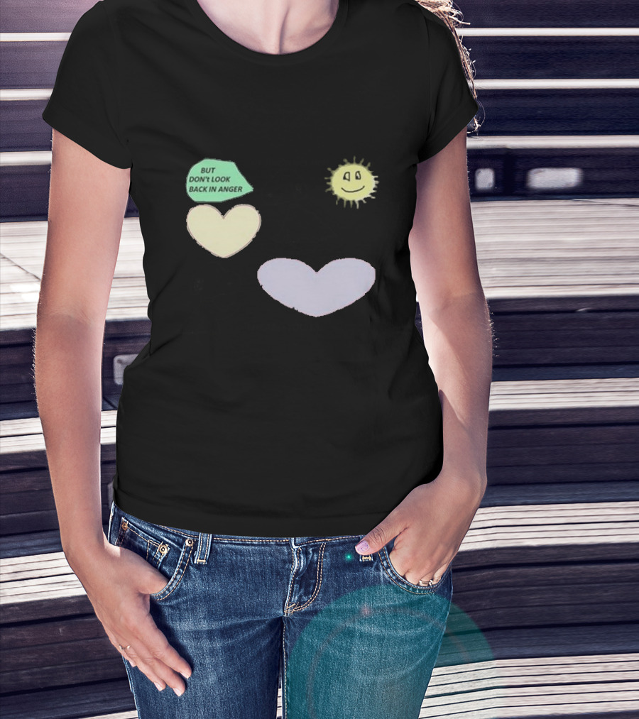 The But Don't Look Back in Anger My Soul Slides Away I Heard You Say T-shirt is designed for everyday wear and a consistent fit. Fabric is pre-shrunk ring-spun cotton with durable stitching. See the size chart below for exact measurements.