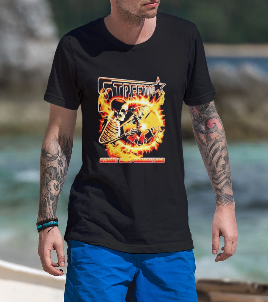 The Street Mob Electrode Electrification T-shirt is designed for everyday wear and a consistent fit. Fabric is pre-shrunk ring-spun cotton with durable stitching. See the size chart below for exact measurements.