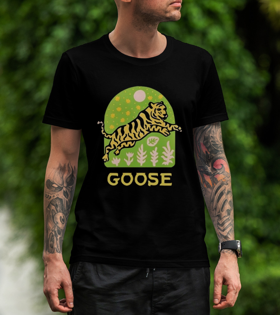 The Goose Tiger Night Sky Festival Tour T-shirt is designed for everyday wear and a consistent fit. Fabric is pre-shrunk ring-spun cotton with durable stitching. See the size chart below for exact measurements.