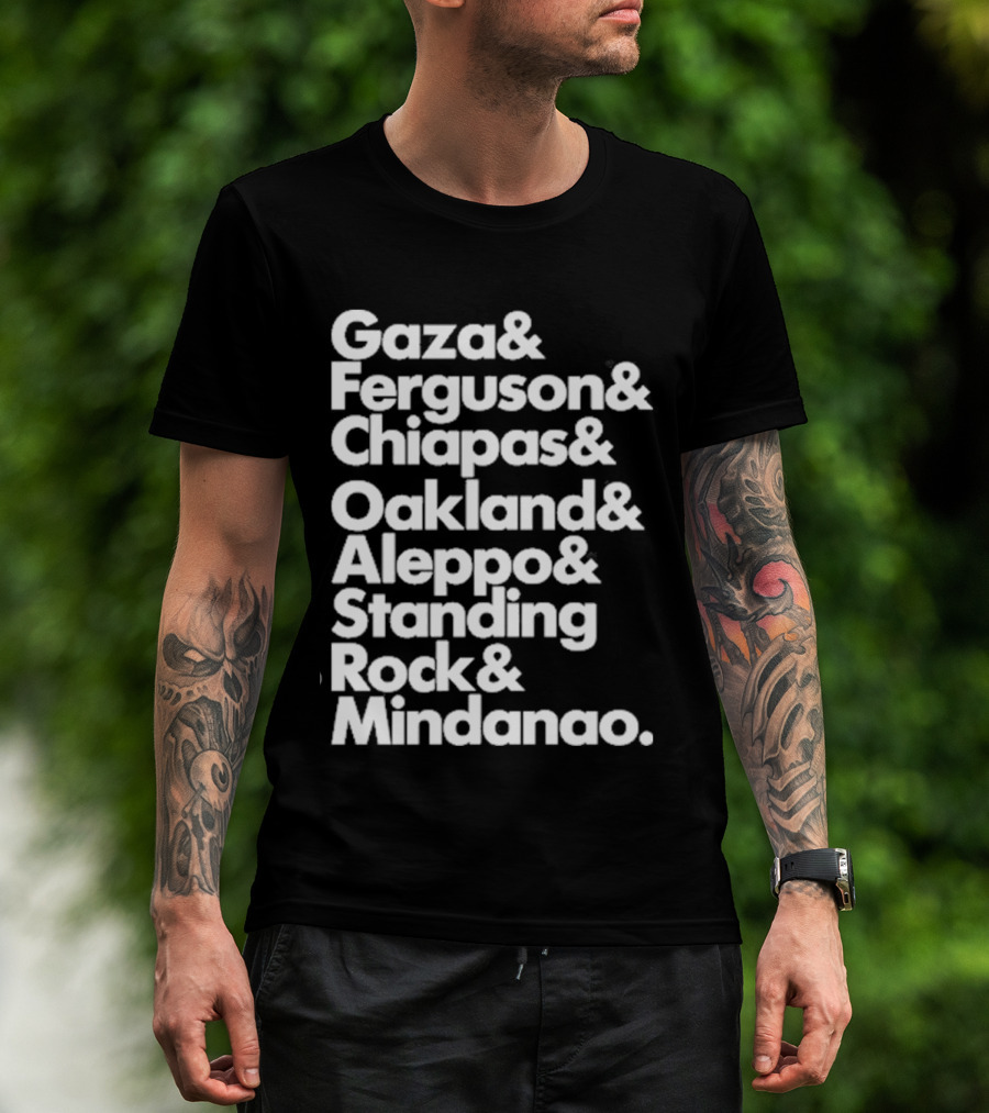 Gaza And Ferguson And Chiapas Oakland Aleppo Standing Rock Mindanao T-Shirt
