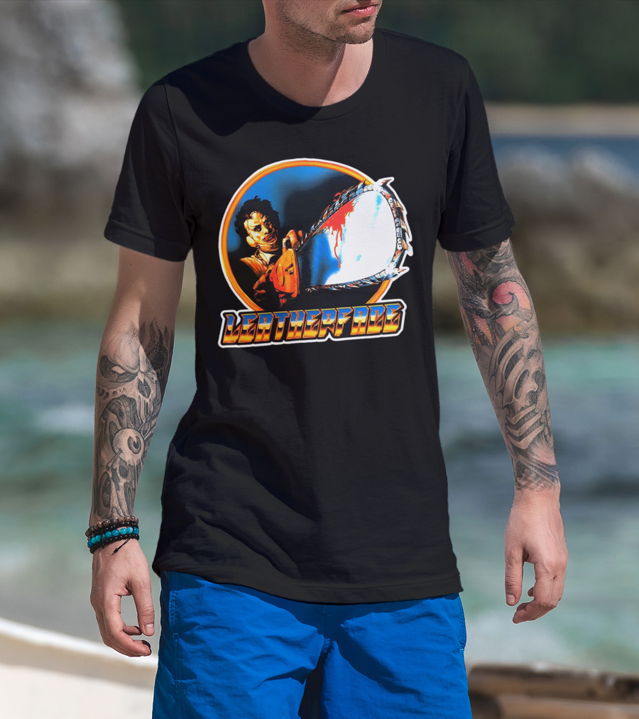 Texas Chainsaw Massacre Leatherface Vintage Horror Chrome Chainsaw T-Shirt