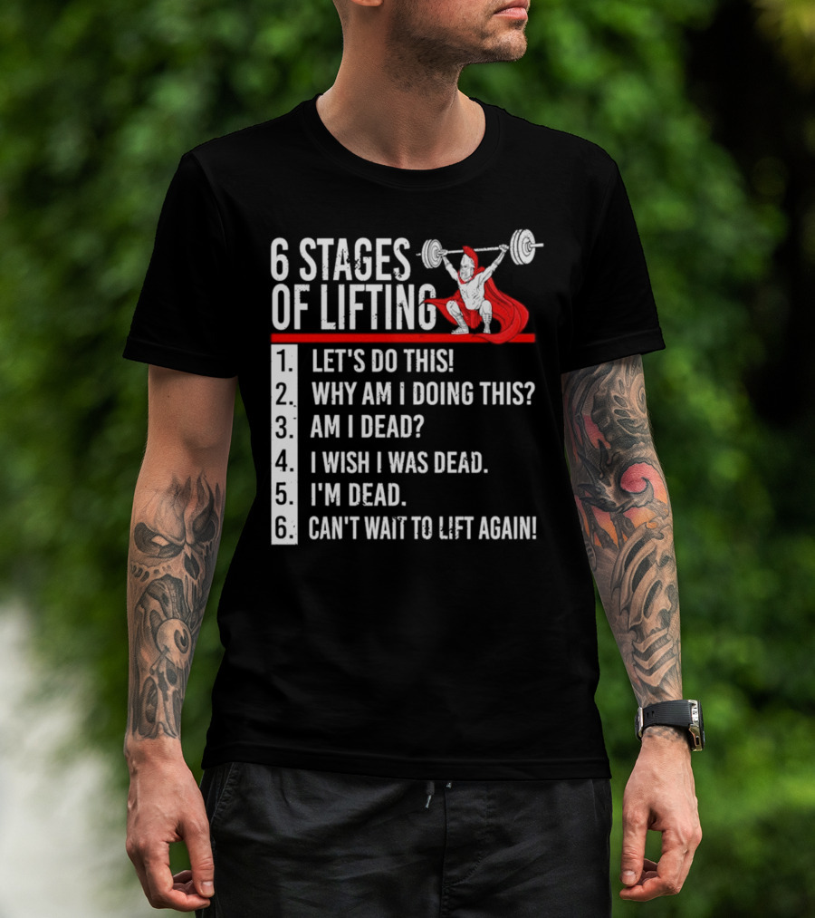 6 Stages Of Lifting Let's Do This Powerlifting Humor Motivational Mindset T-Shirt